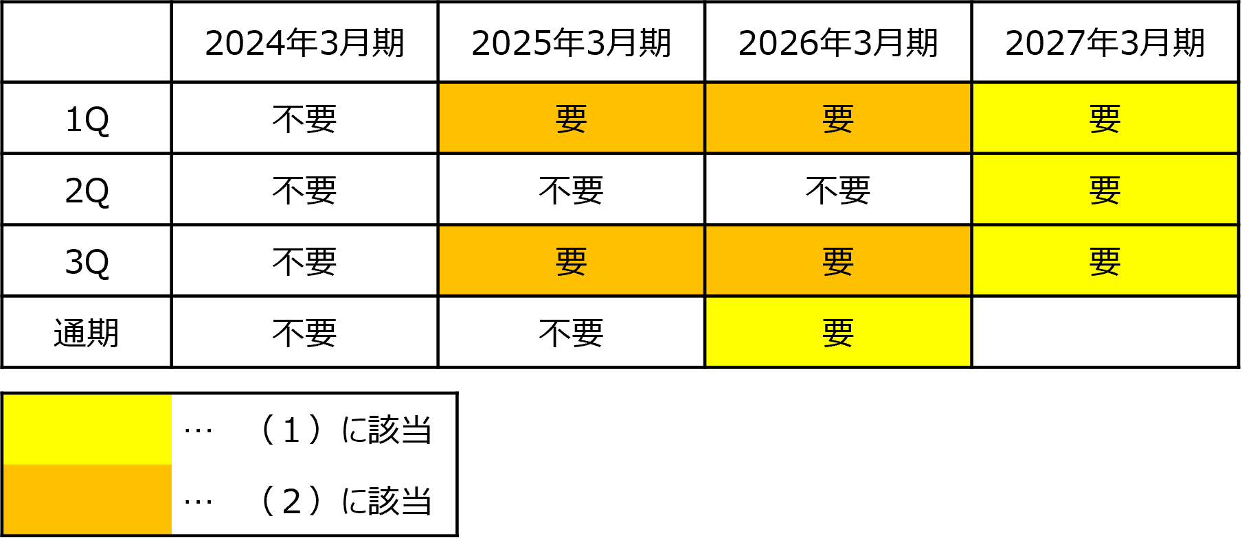 (例)2024年3月期第1四半期から2027年3月期第3四半期の決算短信等を過年度訂正する場合